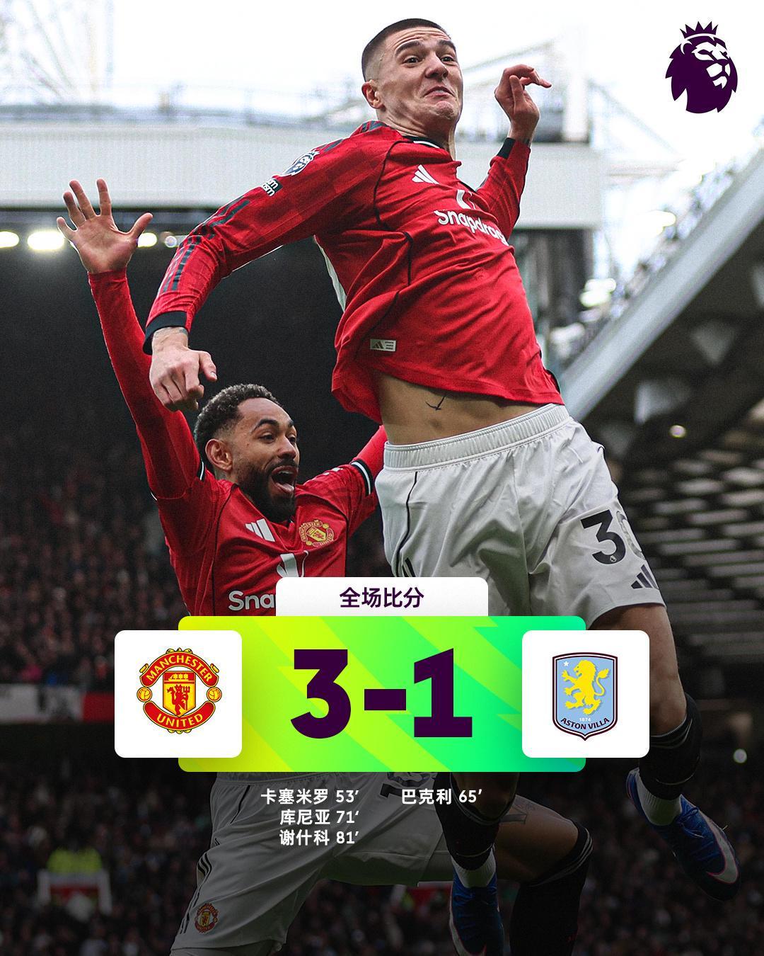 高清直播-热闻|谢什科5战4球,B费破27年神迹!曼联复仇维拉,稳守积分榜前三